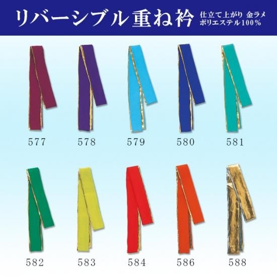 リバーシブル重ね衿 金ラメ 着物 振袖 訪問着 赤紫 紫 水 青 薄緑 緑 黄緑 赤 オレンジ 金銀