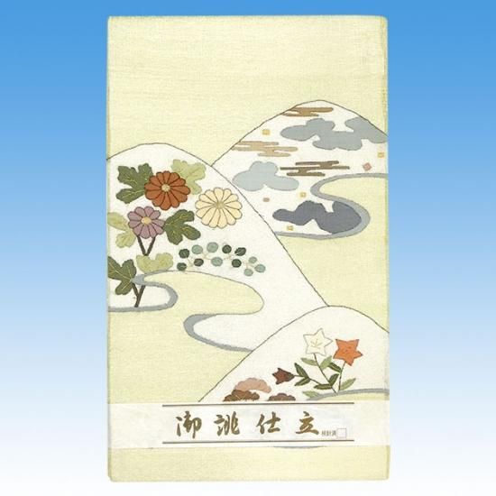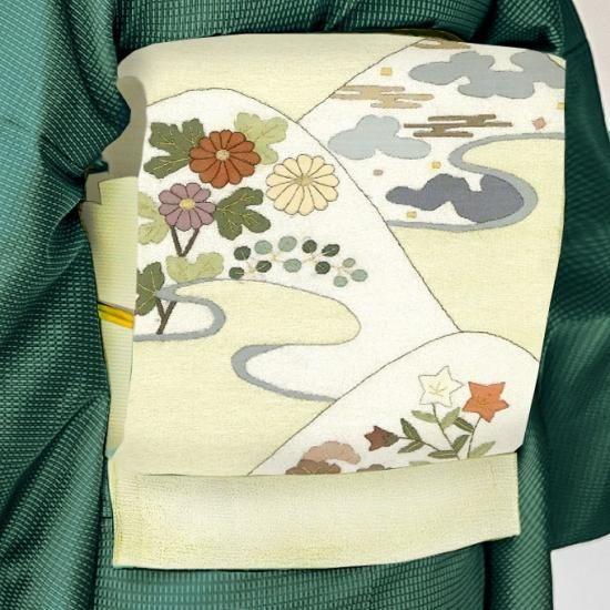 正絹 袋帯 お太鼓柄 新品 白地 オフホワイト 遠山 菊 雲 桔梗 お出かけ 訪問 上品 お仕立て上がり オールシーズン