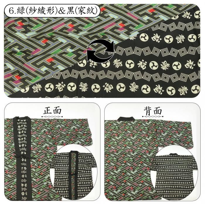 | 6.緑(紗綾形)×黒(家紋)Mサイズ | 2,500円(税込2,750円) 在庫なし |